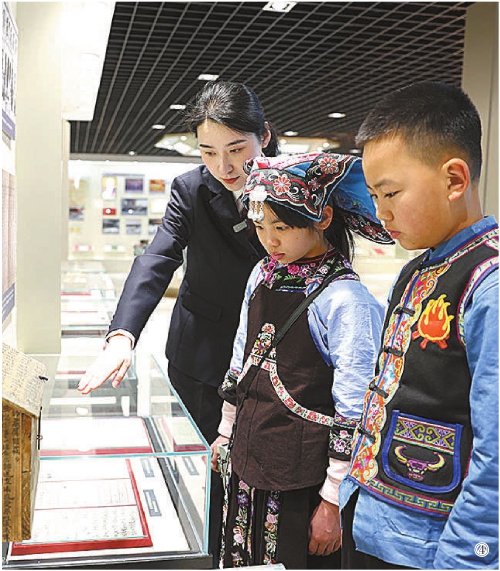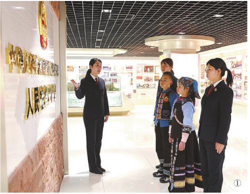 图①:李昌颖和汪政怡走进最高检人民检察史展览陈列室,了解人民检察事业的发展历程。